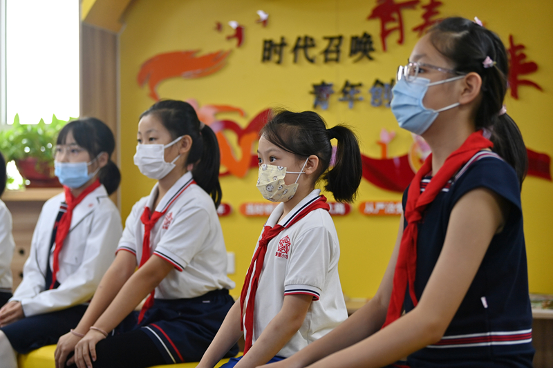 ?天津市和平區(qū)新星小學(xué)學(xué)生在觀看電影《我和我的祖國》(2021年9月28日攝)。新華社記者?李然?攝
