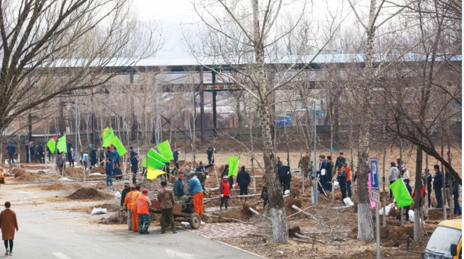 3月31日,高新區(qū)300余名機(jī)關(guān)干部來到楓葉路和管委會辦公園區(qū)內(nèi)開展義務(wù)植樹活動,掀起今春全區(qū)增綠造林的新高潮,當(dāng)日共栽植白榆380余株。