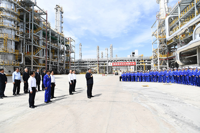 9月13日至14日,中共中央總書記、國家主席、中央軍委主席習(xí)近平在陜西省榆林市考察。這是13日上午,習(xí)近平在國家能源集團(tuán)榆林化工有限公司年產(chǎn)40萬噸乙二醇項目現(xiàn)場考察。新華社記者 李學(xué)仁 攝