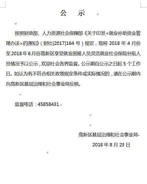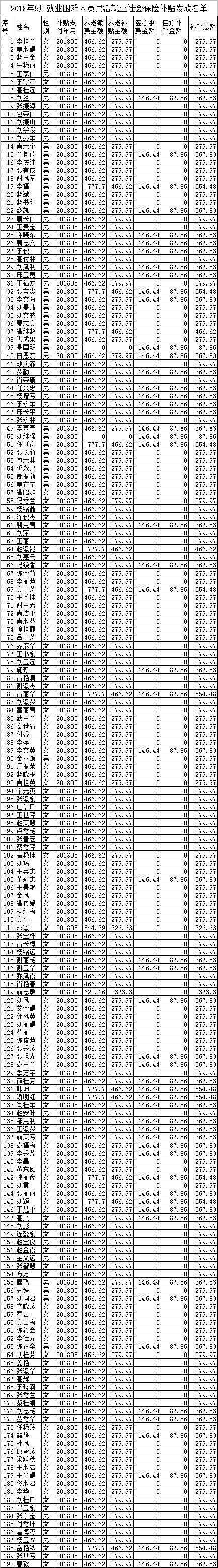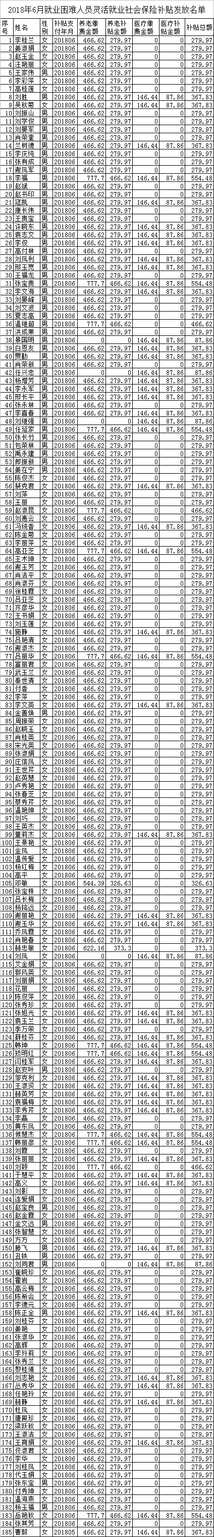 2018年4月至2018年6月就業(yè)困難人員靈活就業(yè)社會保險補貼公示