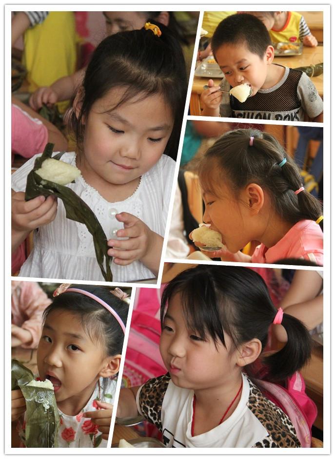整個活動在孩子們的一片歡聲笑語中圓滿結束,但是活動室里仍然充滿著濃郁的端午節氣息。午餐時,當孩子們品嘗著自己親手包制的粽子時,臉上露出的是幸福、甜蜜和滿足的笑容。在這個有意義的活動中,孩子們在濃濃的節日氣氛里學習了包粽子,既鍛煉和發展了幼兒的動手能力,又增進了幼兒對中國傳統文化的了解,獲益匪淺。