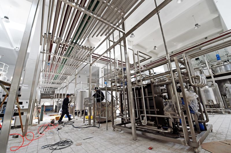 本溪木蘭花乳業建設中的乳品廠房,一期工程主廠房1.03萬平方米,地下庫房4900平方米,將于6月完工,目前一期主廠房已經進入內部設備安裝調試階段。