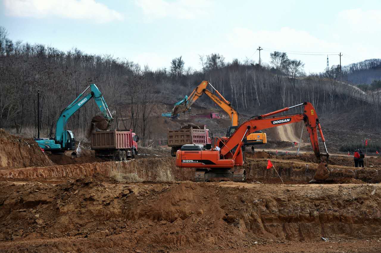 御龍山溫泉度假村項目已于3月初開工,目前處于平整土地階段,出動機械車輛20余臺,平均每天運送土石方6000立。