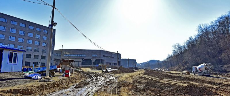 11月15日,記者在高新區御龍山康樂中心項目施工現場看到一派忙碌景象,運送混凝土的車輛穿梭往來,數名工人和機械設備在緊張作業,工人們在抓緊上凍前的有利時機,趕搶工期,全力推進項目建設,確保2017 年全部投入運營。