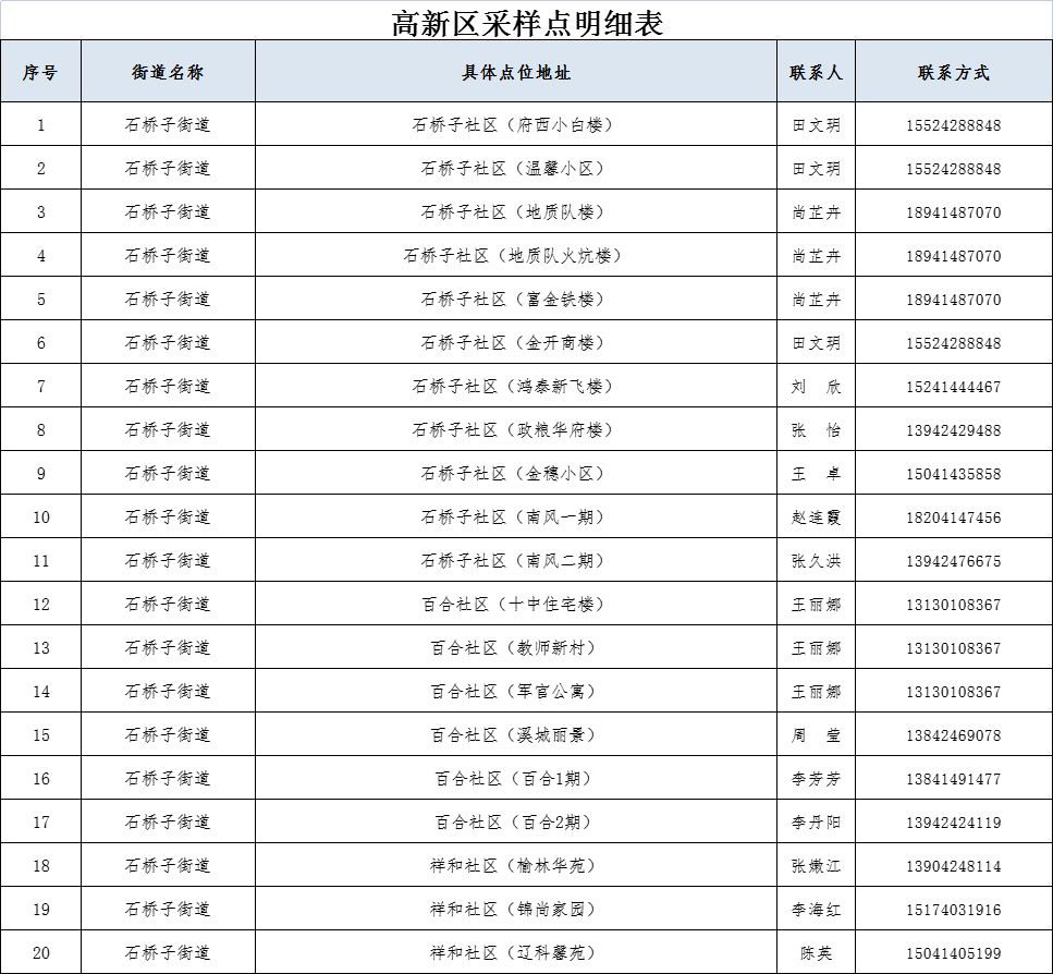 高新區(qū)共設(shè)置核酸采樣點(diǎn)71個(gè)(后附高新區(qū)采樣點(diǎn)明細(xì))。