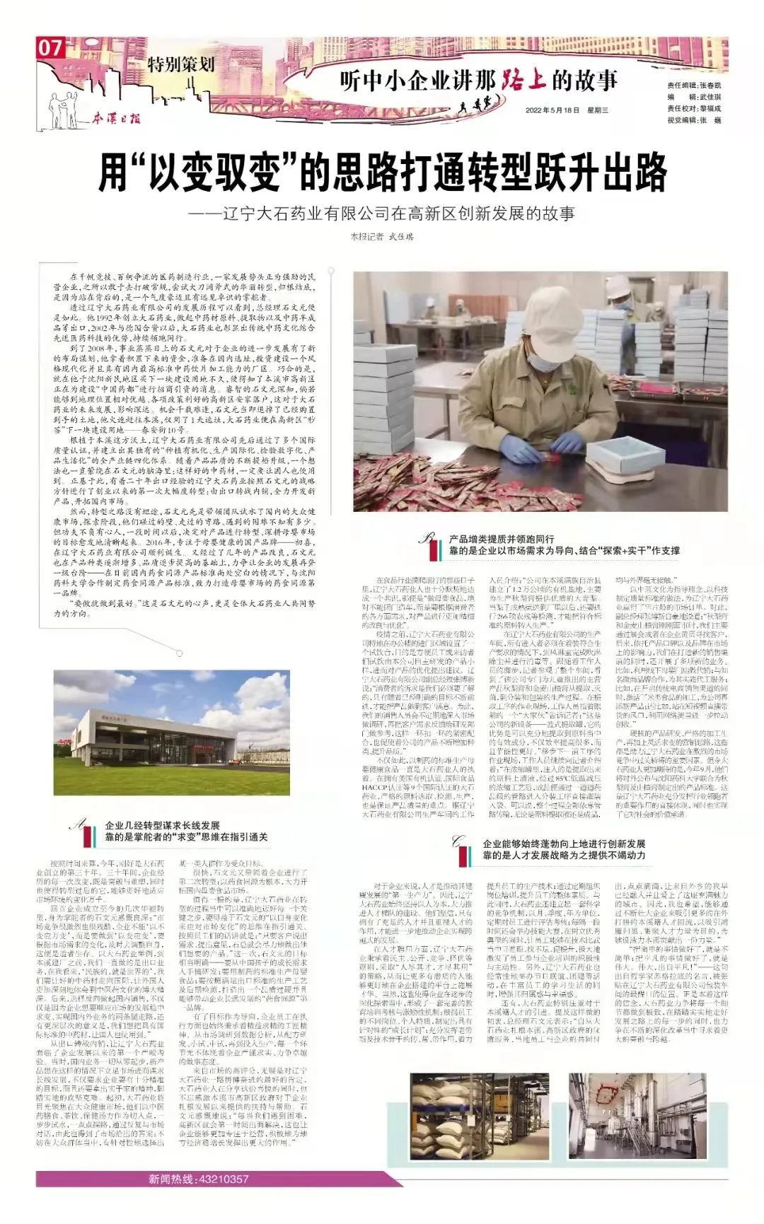 【本溪日報】用“以變馭變”的思路打通轉型躍升出路——遼寧大石藥業有限公司在高新區創新發展的故事