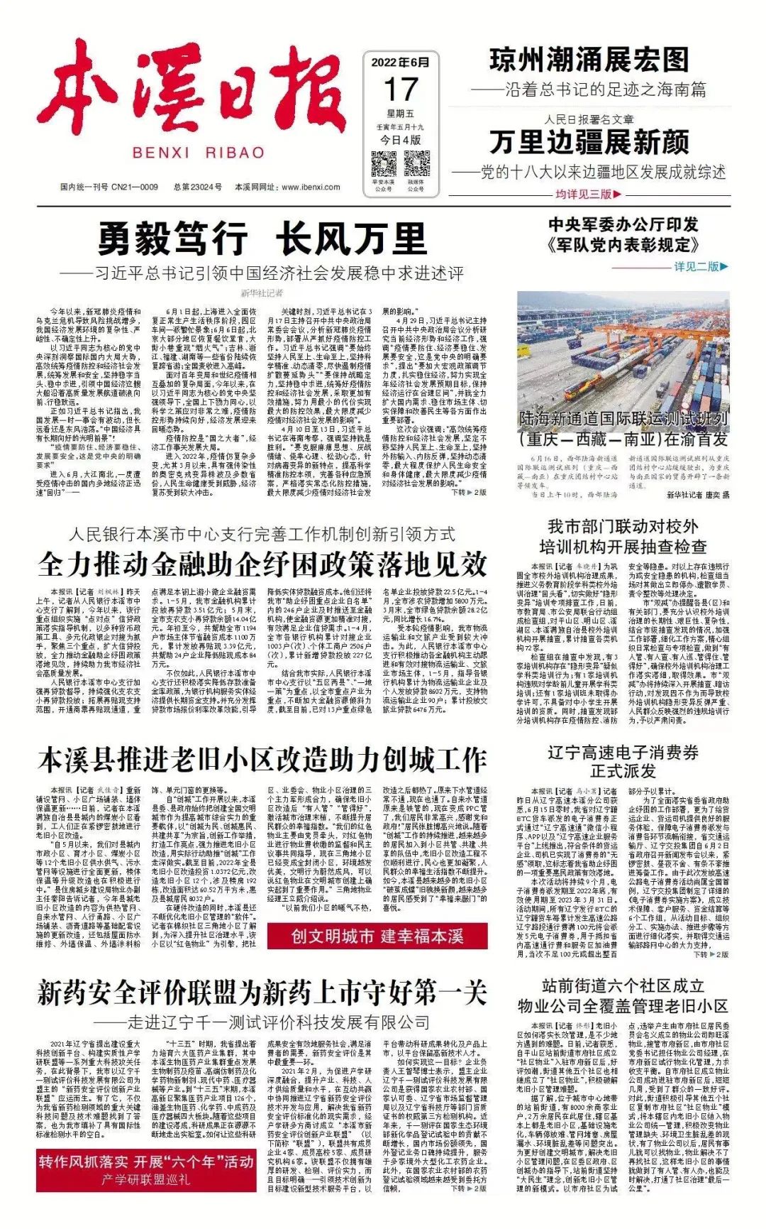 【本溪日?qǐng)?bào)】新藥安全評(píng)價(jià)聯(lián)盟為新藥上市守好第一關(guān)——走進(jìn)遼寧千一測試評(píng)價(jià)科技發(fā)展有限公司