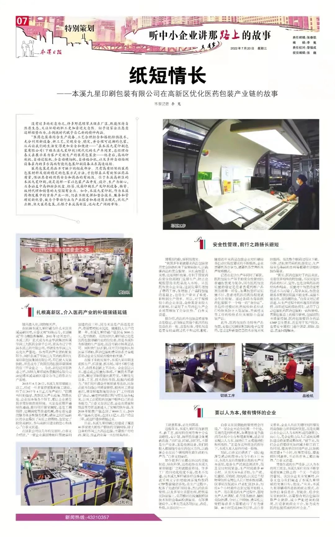 【本溪日報】紙短情長——本溪九星印刷包裝有限公司在高新區優化醫藥包裝產業鏈的故事