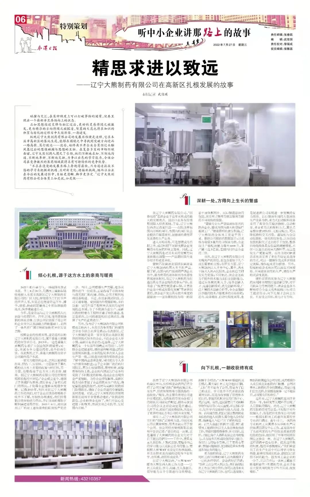 【本溪日?qǐng)?bào)】精思求進(jìn)以致遠(yuǎn) ——遼寧大熊制藥有限公司在高新區(qū)扎根發(fā)展的故事