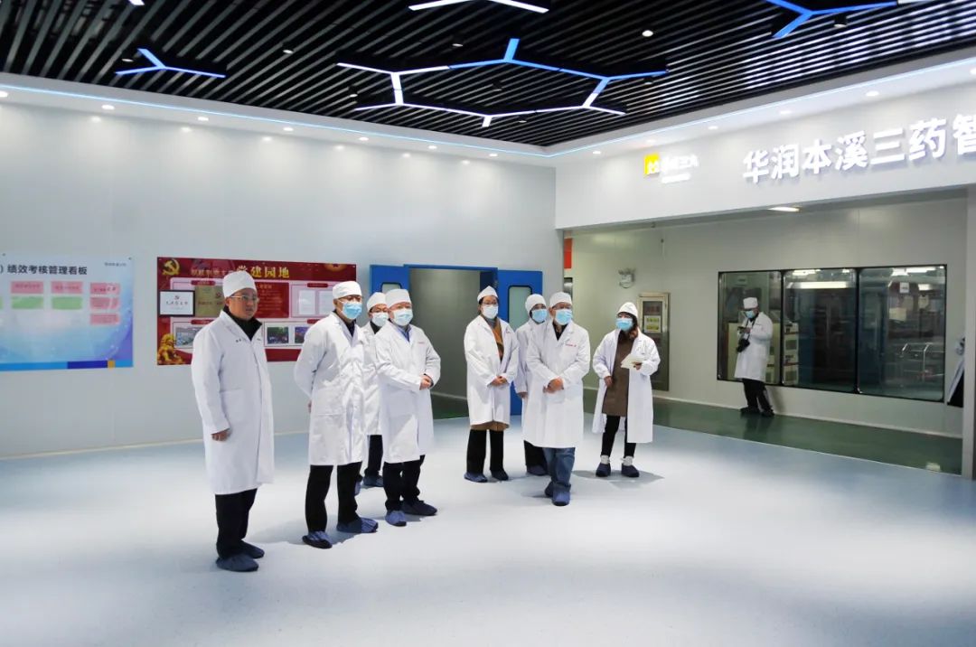 高巍一行首先來到遼寧華潤本溪三藥有限公司,實地參觀公司數據采集與監控系統和氣滯胃痛顆粒生產車間,仔細了解企業發展歷程、市場運營、科技創新、產品銷售等具體情況,詢問企業需求和存在困難,并與企業負責人就發展規劃、未來前景等進行交流。
