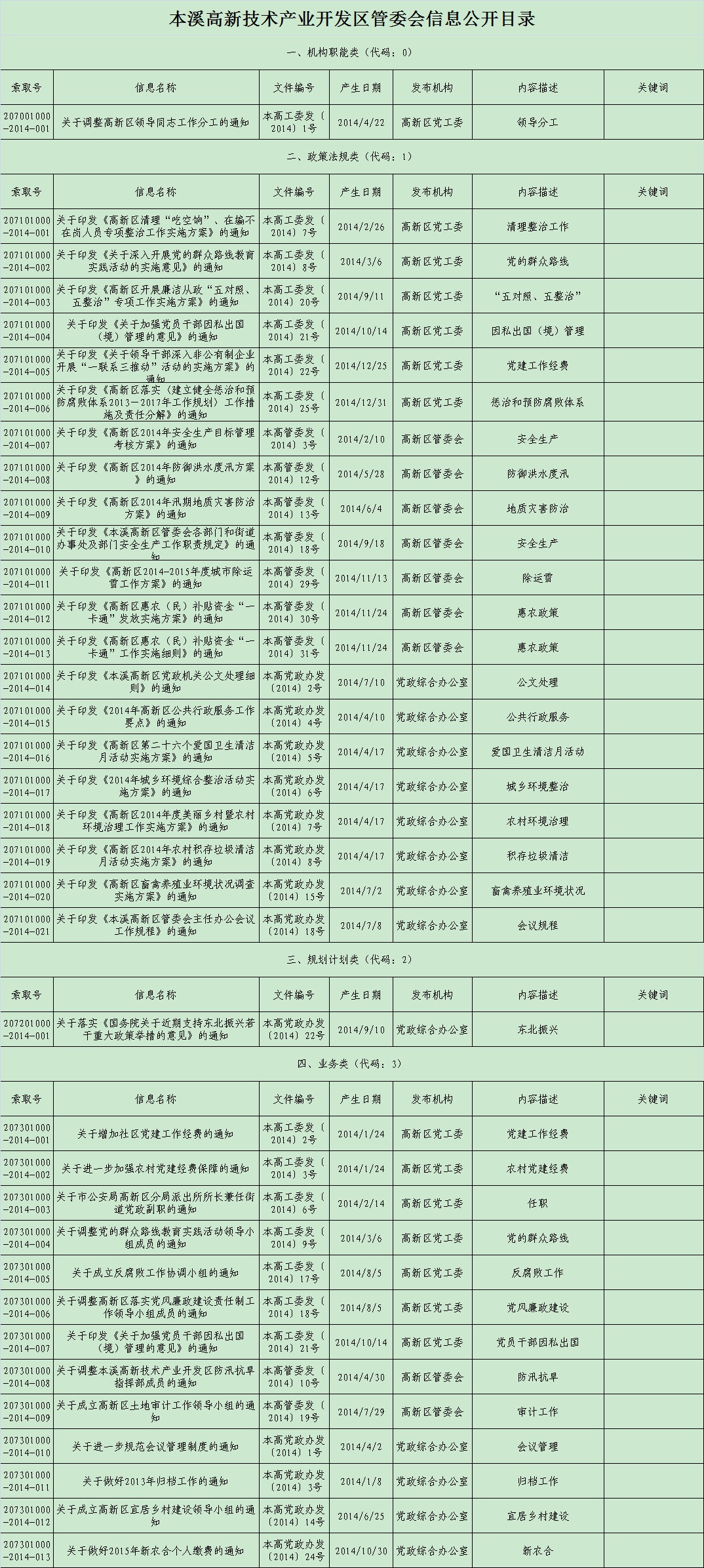 2014年本溪高新技術(shù)產(chǎn)業(yè)開發(fā)區(qū)管委會信息公開目錄